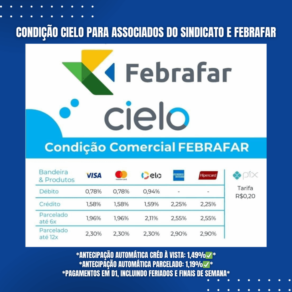 O Sindifarma JP celebra mais uma conquista que reafirma sua vocação institucional de servir, fortalecer e impulsionar o setor farmacêutico local. Em um cenário econômico que exige estratégia, união e inteligência coletiva, a entidade dá um passo firme ao firmar nova parceria com a Cielo, garantindo condições diferenciadas e taxas mais vantajosas nas maquininhas de cartão para as empresas associadas.